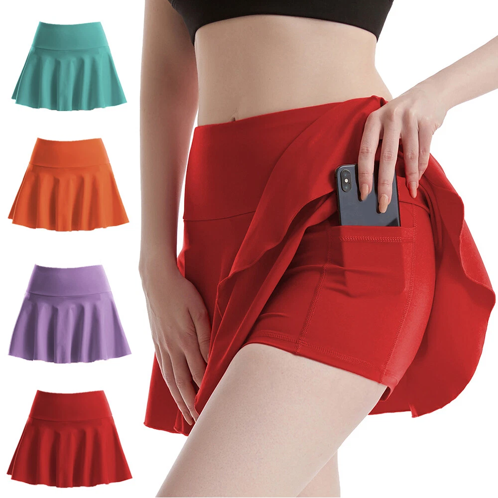 Yoga Skirt Pleated Skirt With Pockets Shorts Sportswear Fitness 7 Solid Colors Ebay